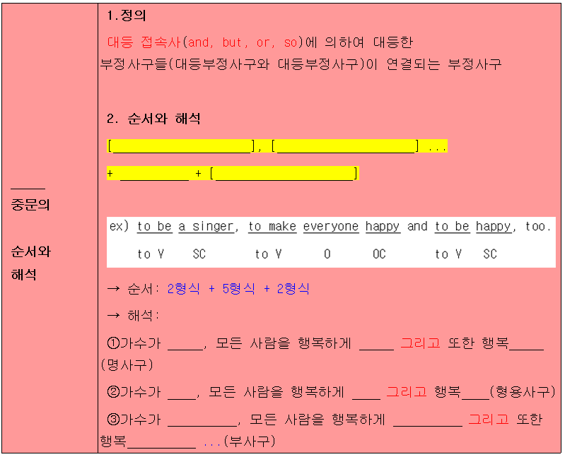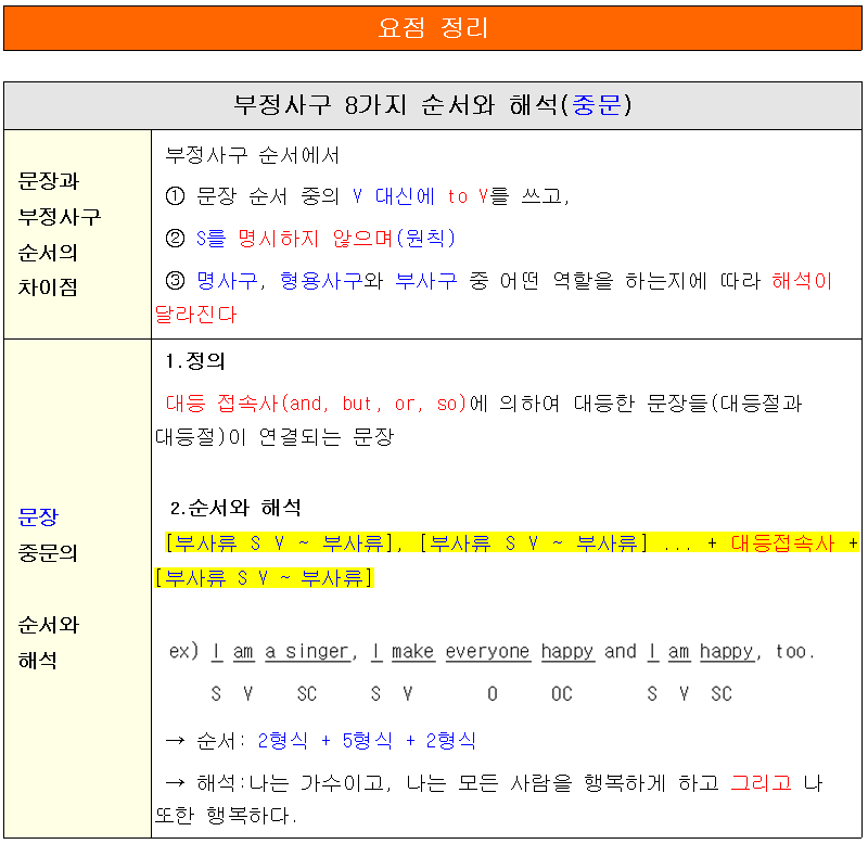 (부정사구 중문의 일반적 순서를 이렇게 기억해두시기 바랍니다._