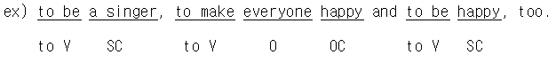 [부사류 to V ~ 부사류], [부사류 to V ~ 부사류] ...
