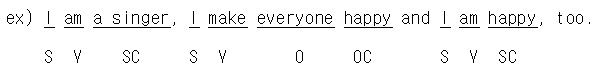 단문의 순서는 하나이지만 중문의 순서는 두 개 이상이므로, (1~5형식 순서와는 별개로) 중문의 순서도 추가로 알아두셔야 합니다.(단문, 중문, 복문과 혼문은 차후 문장편 강의에서 자세히 비교하겠습니다.)