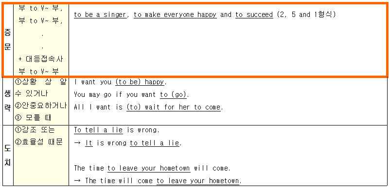 | < 참고 링크 > 부정사구 1강: 부정사구 8가지 순서와 해석(1~5형식) https://eskill.tistory.com/165 |
