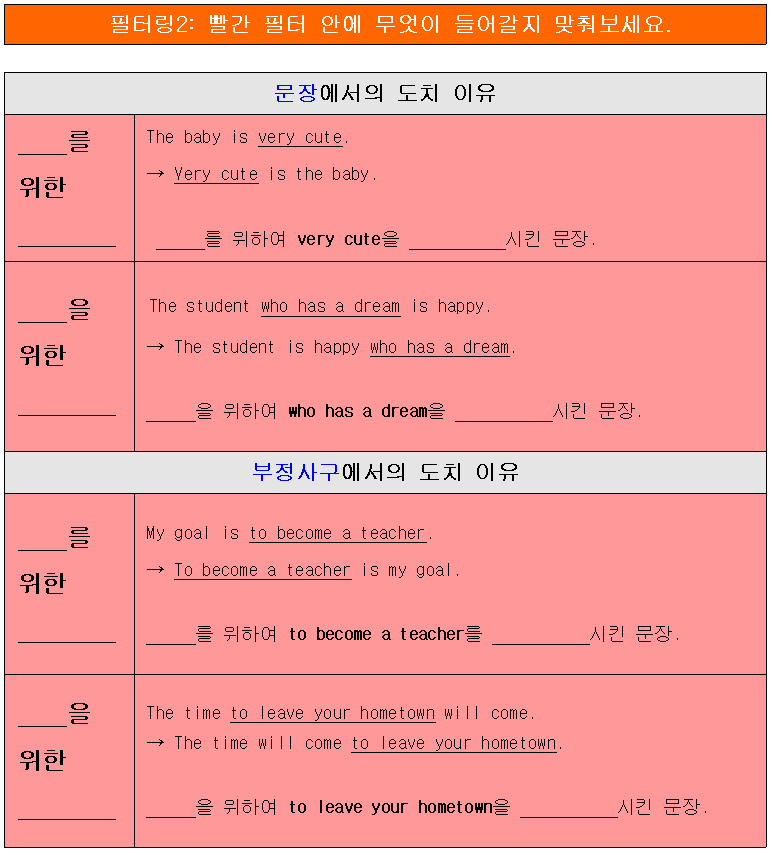 문장과 부정사구에서의 도치를 비교해보겠습니다.