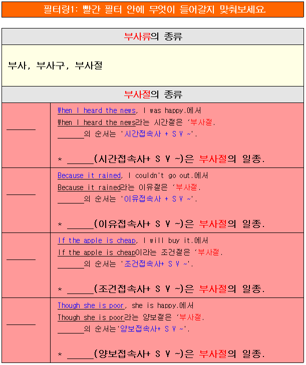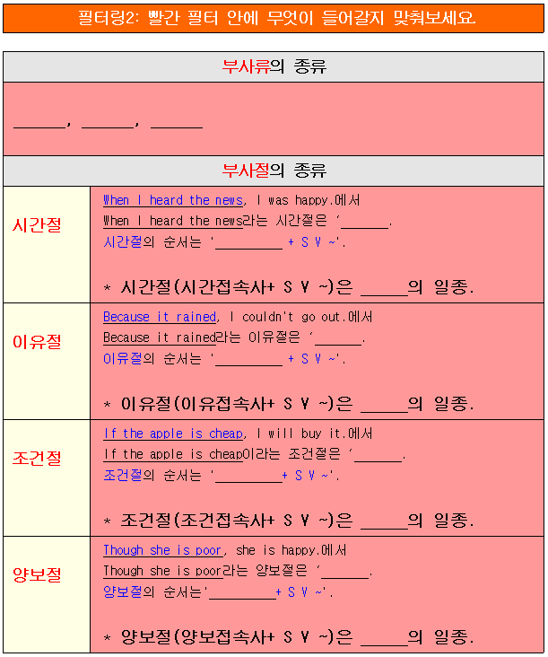 부사절 강의이므로 빨간 색에 초점 맞추며 따라오세요.